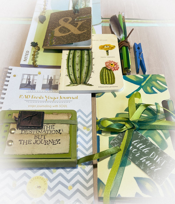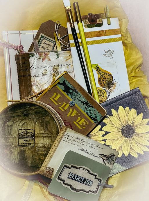Choose from a selection of uniquely curated journal groupings by artist Cindi A. Jobe for yourself or for gifting. Each selection is a one-of-a-kind combination of hand embellished journals, notebooks, books and bookmarks, art supplies, small art pieces and mini surprises inside repurposed boxes, envelopes and hidden pockets within every selection.